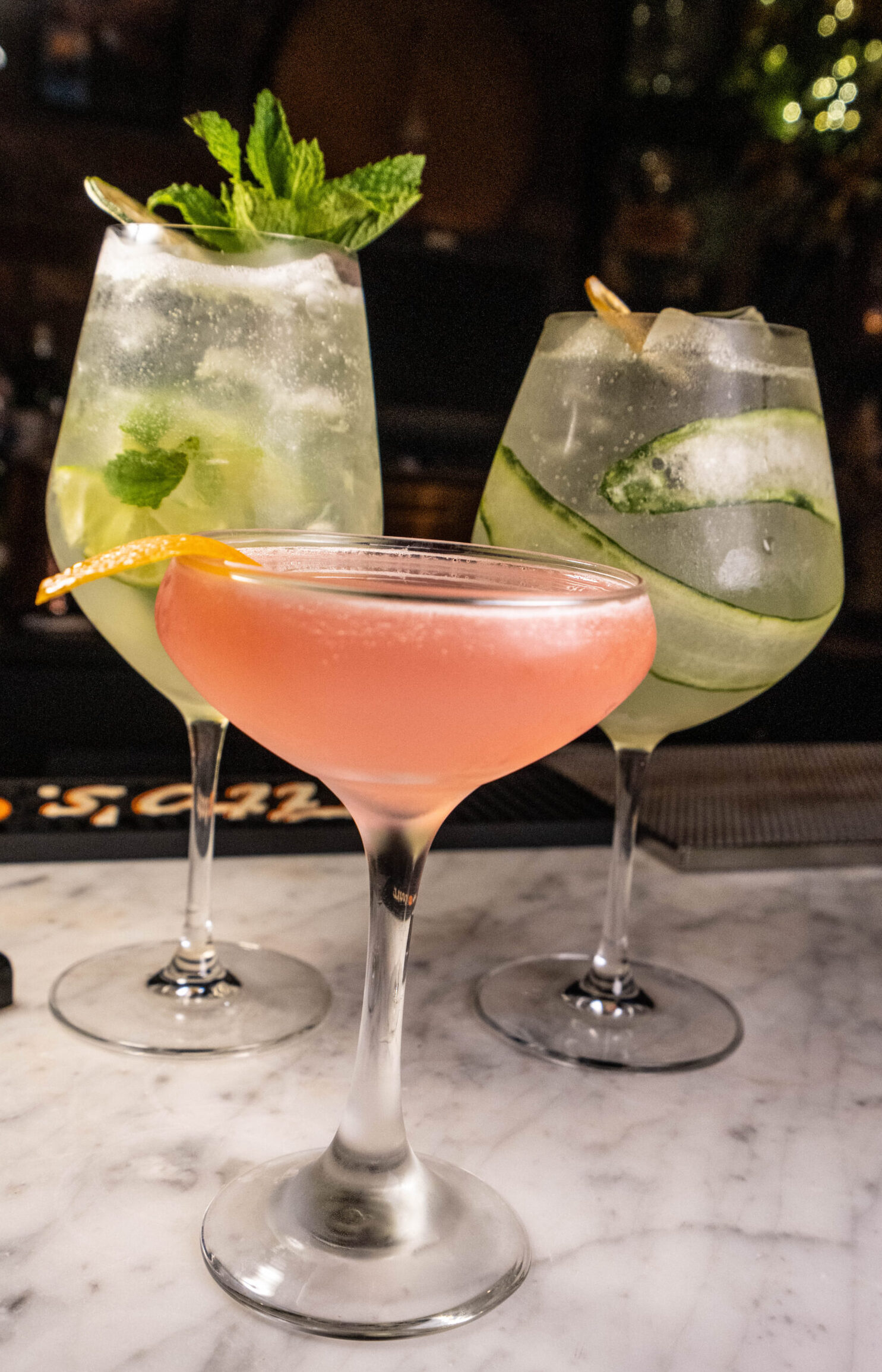 Gin, Elderflower, Pasteurized Egg Whites, Lemon Juice, Rose Water